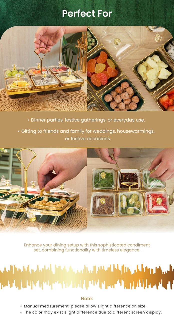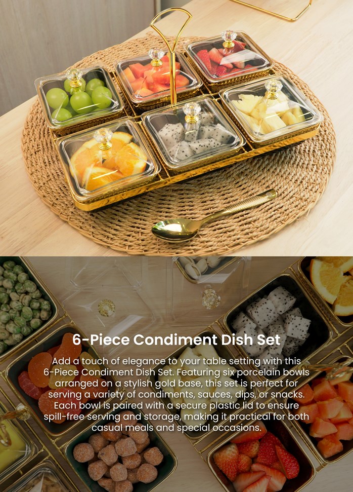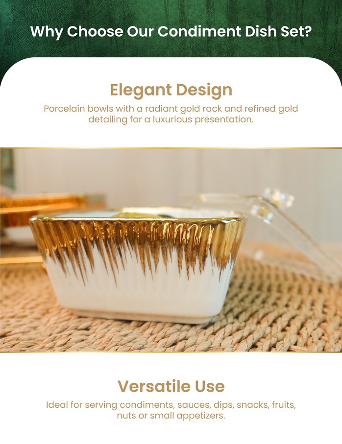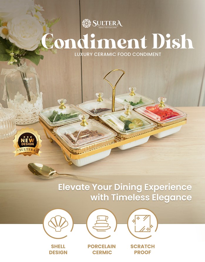 Tingkatkan pengalaman menjamu selera anda dengan Premium Condiment Dish Sultera – [Versi 2026], set kondimen porselin 6-keping yang direka dengan teliti, menggabungkan keanggunan abadi dan praktikaliti harian. Menampilkan enam mangkuk porselin yang disusun kemas di atas rak mewah berkemasan emas, set ini menambah sentuhan eksklusif pada mana-mana susunan meja — daripada hidangan keluarga santai hingga jamuan perayaan.