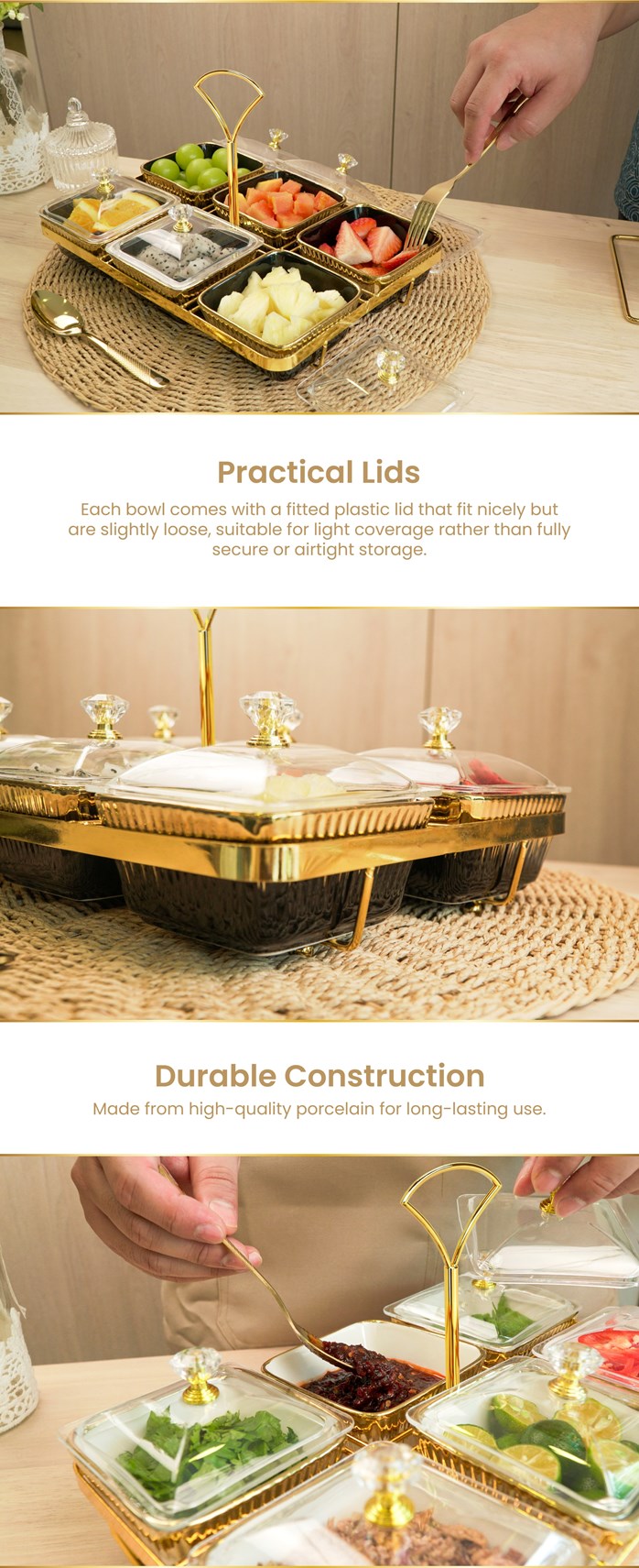 Direka untuk keindahan dan fungsi, setiap mangkuk didatangkan dengan penutup plastik yang dipasang kemas untuk perlindungan ringan, membantu memastikan kandungan kekal teratur semasa penyajian dan penyimpanan.